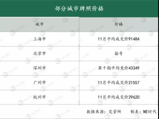 目前,A級新能源車上量的城市都是一線限行限購城市,車牌獲取成本高。以上海為例,11月份車牌平均成交價(jià)高達(dá)91484元,牌照成本基本上能購買一臺平價(jià)A級燃油車。北京實(shí)行排隊(duì)搖號的政策,時(shí)間成本比較高。深圳、廣州、杭州等城市牌照成本基本都在2萬以上,加上限行限購政策以及這些城市相關(guān)配套的相對成熟,新能源車也能跟燃油車進(jìn)行競爭。