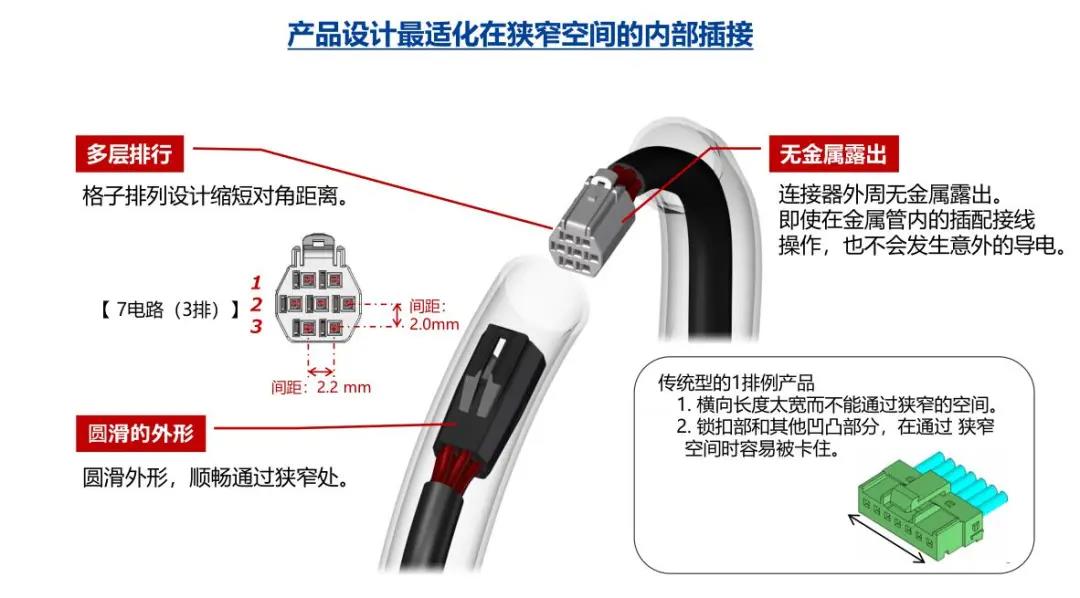1. 纖細光滑的外形適合狹窄空間的布線