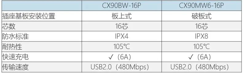 ● 特性:防水USB Type-C插座“CX90BW-16P”“CX90MW6-16P”